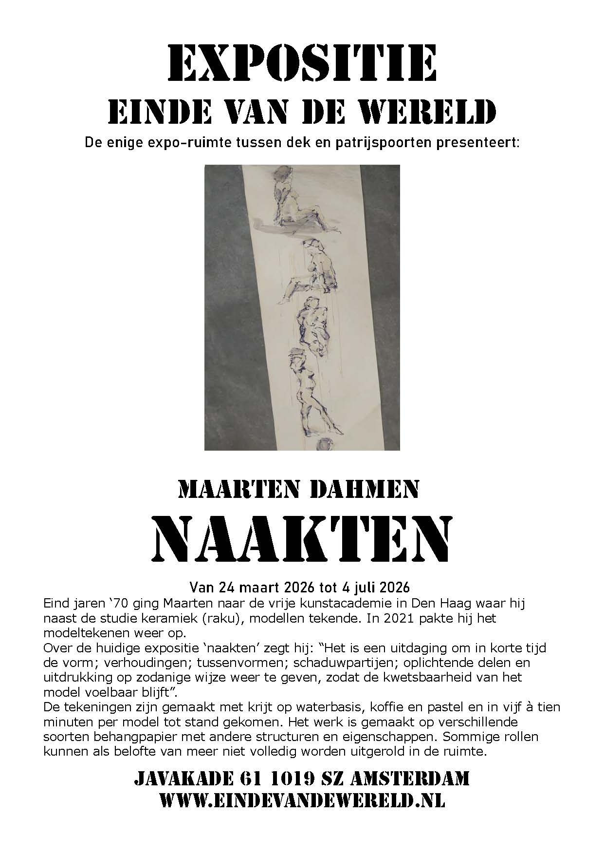 De expositie is tot eind oktober te zien op het schip het Einde van de Wereld, Javakade 61, 1019SZ Amsterdam. De openingstijden zijn woensdag en vrijdag vanaf 18.00 uur.
