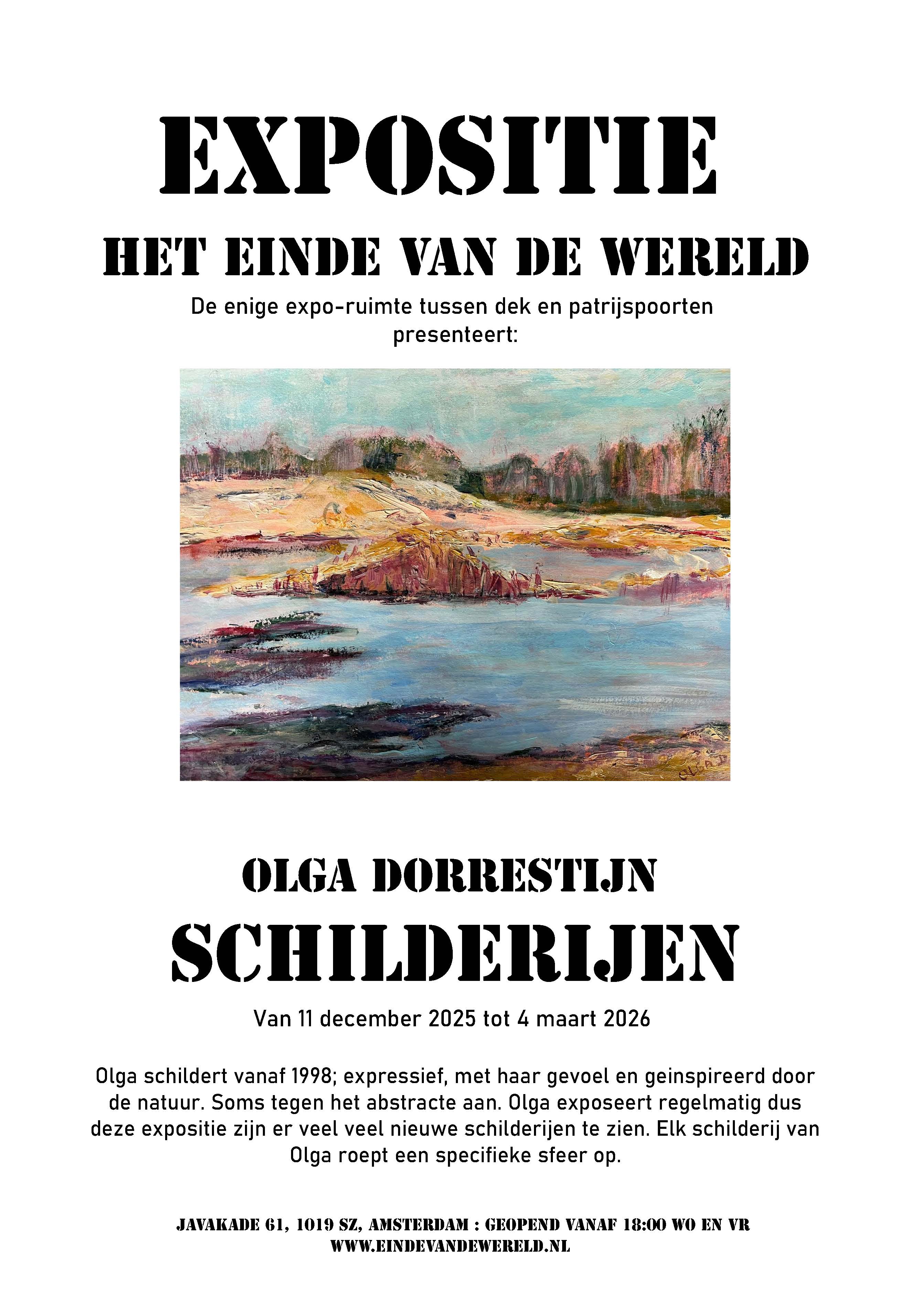 schilderijen van olga dorrestijnOlga schildert vanaf 1998; expressief, met haar gevoel en geinspireerd door de natuur. Soms tegen het abstracte aan. Deze expositie is een keuze uit een veelvoud van haar werk. Elk schilderij van Olga roept een specifieke sfeer op.